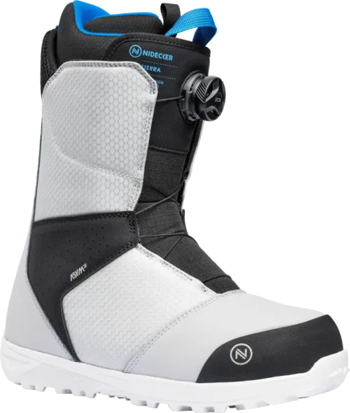 When Nidecker built the Sierra, they set out to make the lightest snowboard boot they’ve ever made, without sacrificing the signature ride feel of the modern Nidecker boot line. The lighter your boot, the longer and harder you can ride. And they’re stoked to say that the Sierra is 27% lighter than its predecessor. When you’re dropping weight, it all starts at the outsole. With the Sierra, they gave it their Gravity outsole, which is made out of lightweight and durable EVA. They shaped the lugs in the same way as the rest of their outsoles - by taking cues from their mountain playgrounds, then adapting them to give you as much grip as possible. The upper part of the boot is closed swiftly and with precision via a single H4 BOA dial on the tongue. They used BOA's TX3 textile laces to drop even more weight, add durability and give a more natural feel to the closure. Inside, their heat-moldable Bronze Level Liner with Single Density Footbed will keep you supported, snug and warm. 1:1 lasting means they used a specific shell, liner and footbed for every full and half size. Comfortable? Very. Like the rest of their range, the Sierra uses an asym shape on the outer part, meaning that the boot sculpts perfectly to their binding hibacks and ensures optimum power transfer. That applies whether you’re riding the bunny hill, the groomers or the pow stashes at the resort. The Sierra is awesome value, and allows access to Nidecker bootfeel and tech without breaking the bank.
